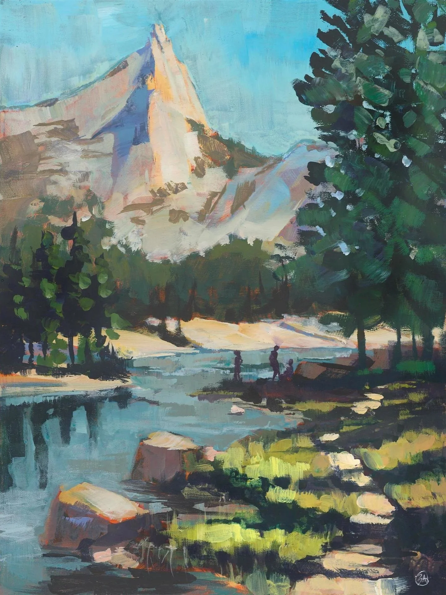 Some days it’s hard to decide whether to climb or paint. On this day, I left my group of climbing friends and scooped up our three 10 year olds, friends since birth, and we hiked to Lower Cathedral Lake where we each could set up a base, mine for painting and theirs for playing. What joy to watch them play by the lake - the best kind of playground.