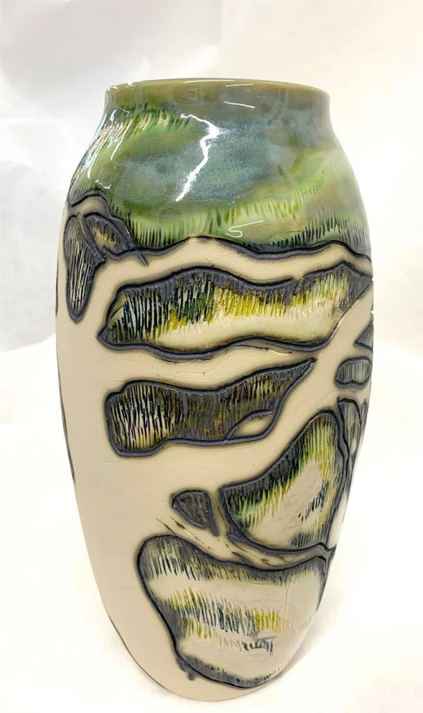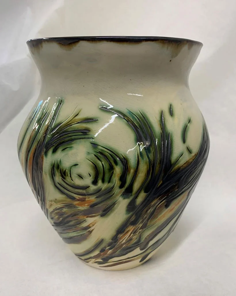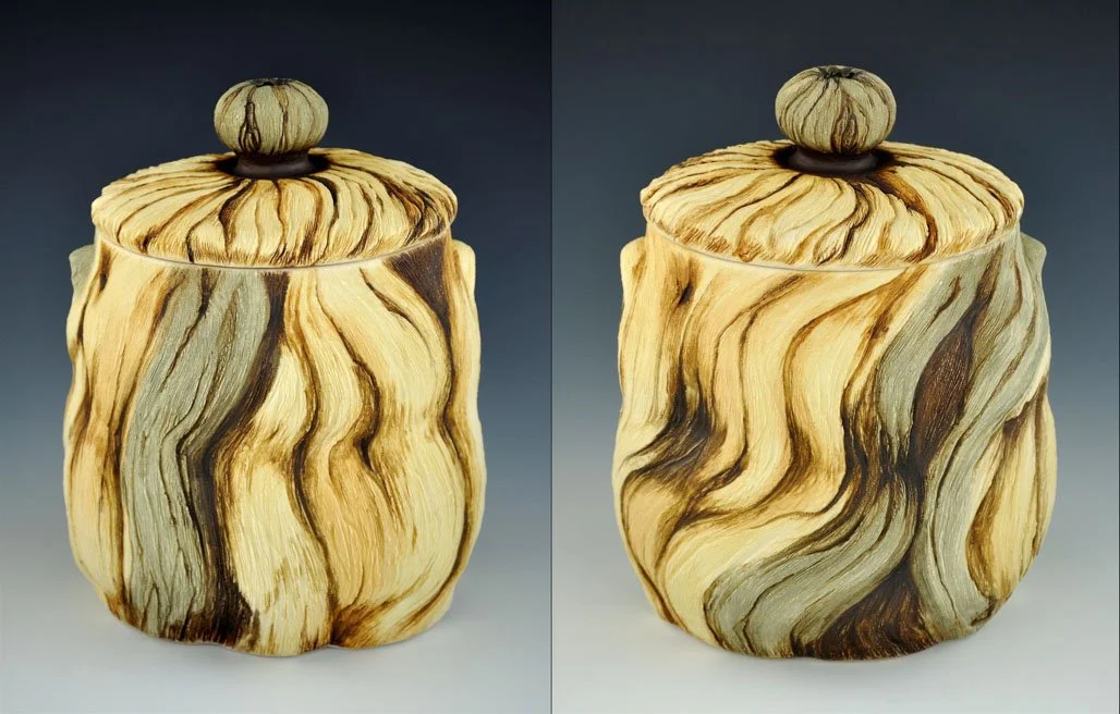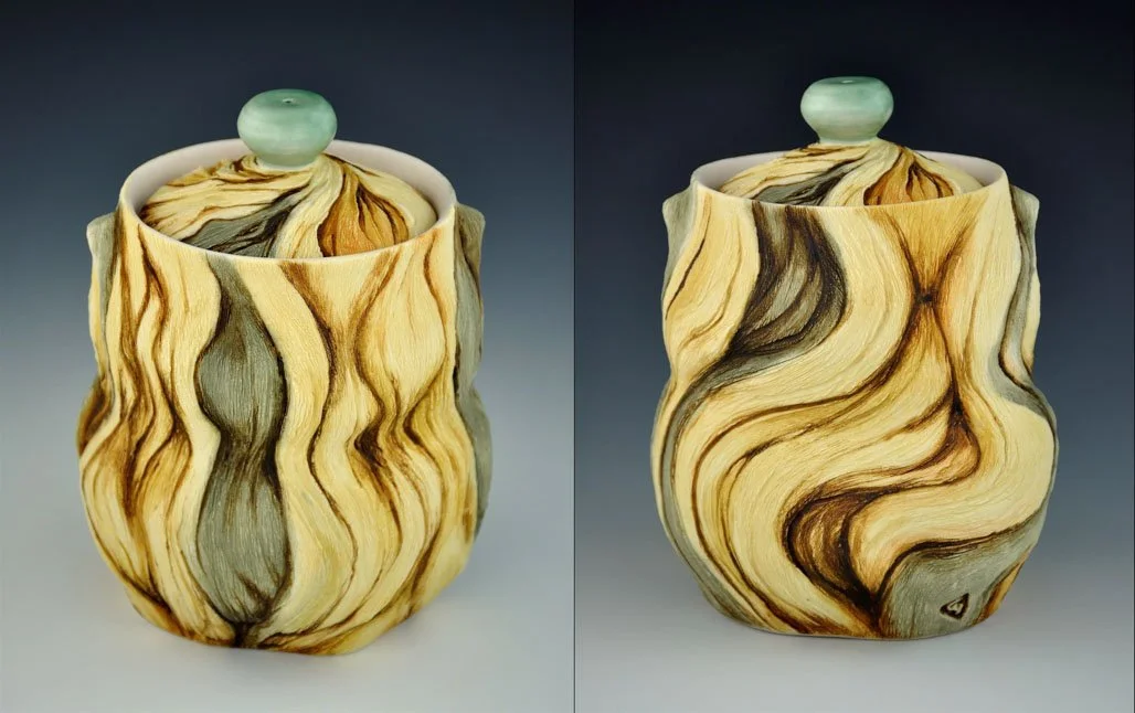 1) “Bristlecone Covered Vessel 2” Ceramics by Cynthia Seigel